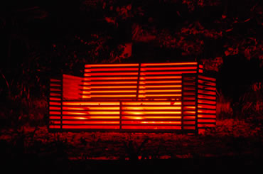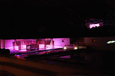 The furniture comes to life at dusk with a sophisticated remote controlled lighting system linking the chairs on the lower level with the sofa set high above. |