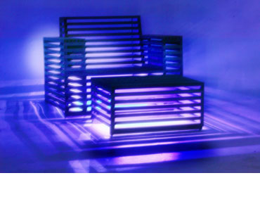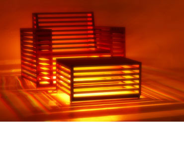 Any individual piece or group of pieces can be illuminated with our colour-changing LED Lighting system. We can supply simple systems or those with full remote control. Pieces that are the focal point in a garden during the day can be transformed into a contemporary light sculpture at night. |